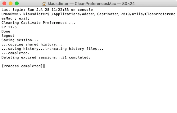 - Clean preferences (with Applications/Adobe Captivate/utils/CleanPreferencesMac)