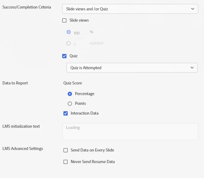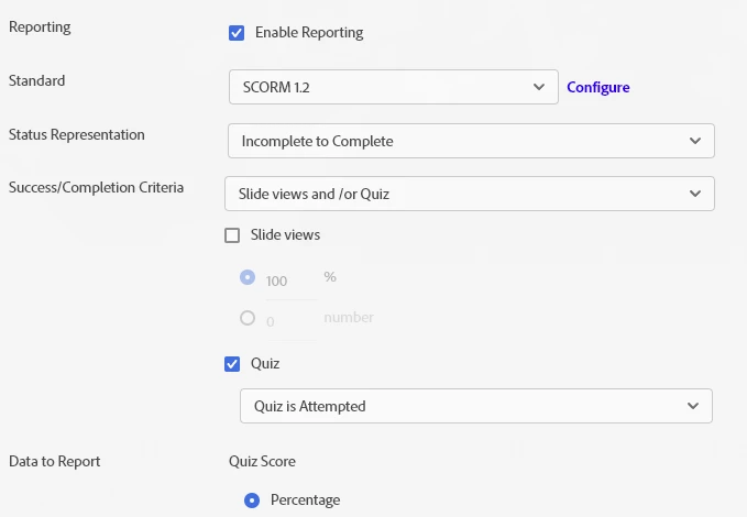 I created a training using Captivate 12.3 and when I upload it to my LMS (NeoGOV) as a Scorn 1.2 file, the training works great, however, if we close the training before completing and we try to resume it will just open up a blank page and leaving us unable to complete the training.