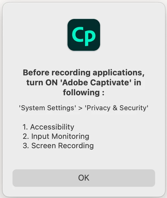I need some help. I am having issues working with software simulations while using Mac OS. Captivate is not recognizing my security settings. At first I thought it was a warning as it appears to be working.