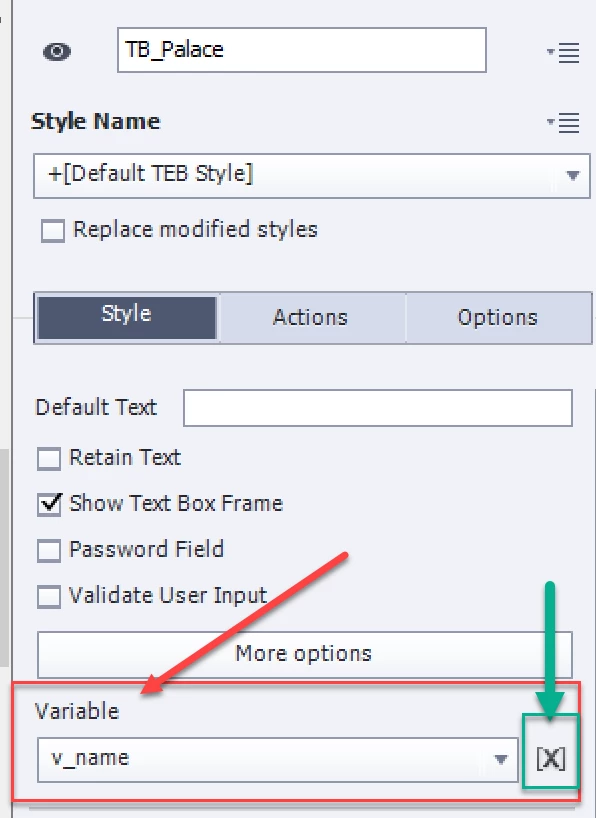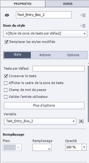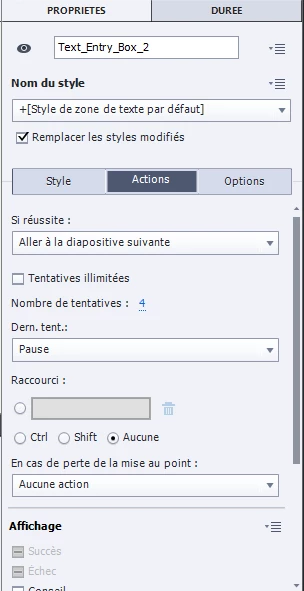 Voici en pj le paramétrage Text entry box de Style et Action.