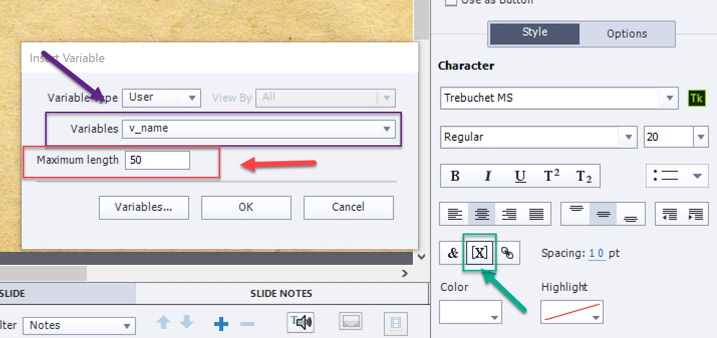 bien que je coche la case "conserver le texte" dans les propriétés de Text entry box, d'une diapositive à une autre, ce qu'a écrit mon utilisateur n'est pas conservé.