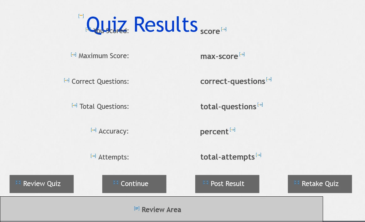 I made a mistake and removed some of the buttons on the bottom of the quiz results slide, and now I can't figure out how to get them back. I did this and saved the content, and apparently even changed some sort of default setting.