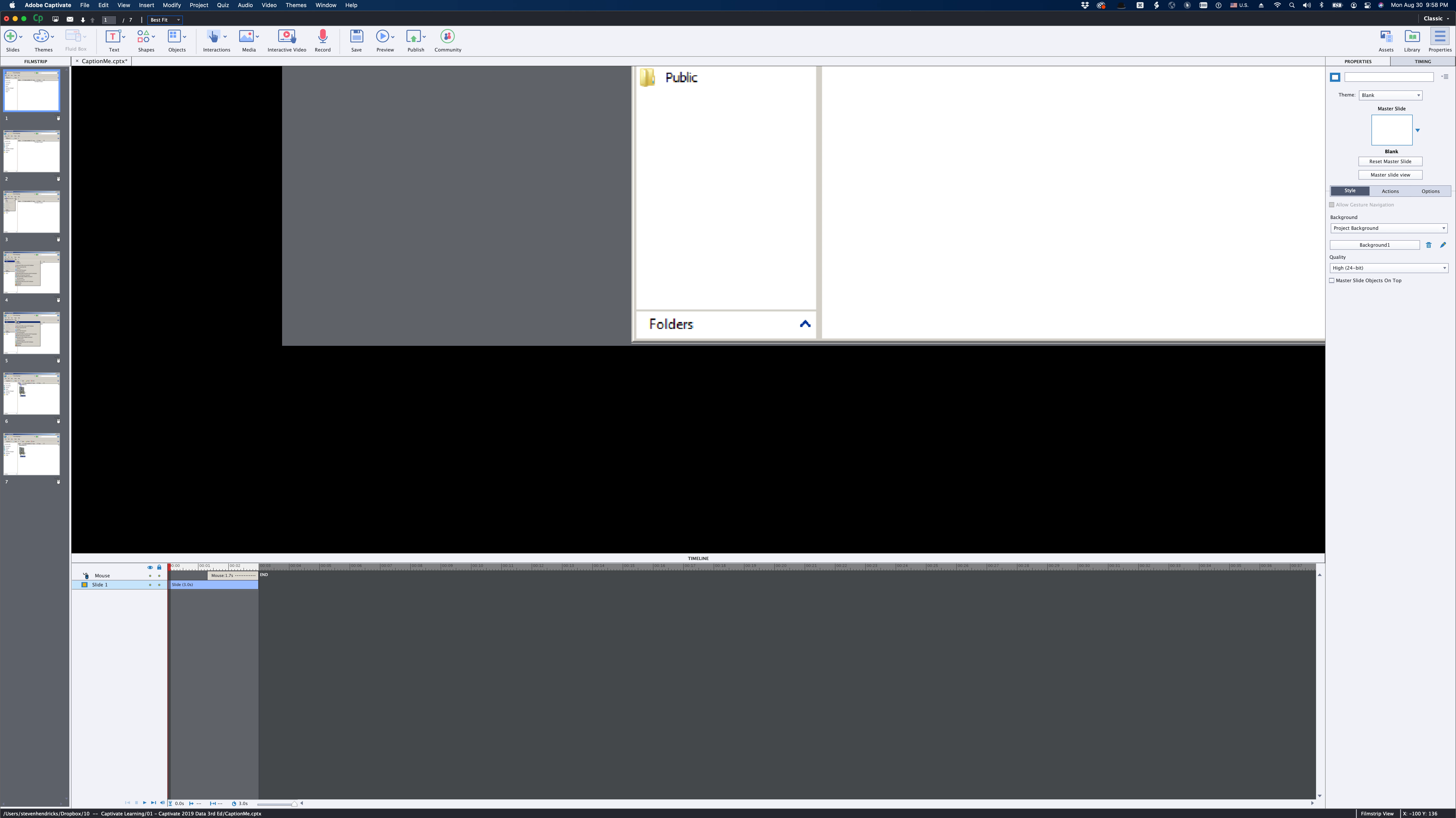 I have the latest build of Captivate 2019 for Big Sur installed. It works as long as I'm zoomed in at 200 or less. Once I zoom to 300, the display of the slide become black. I have attached a screenshot. Is anyone else having this problem? Any solutions?