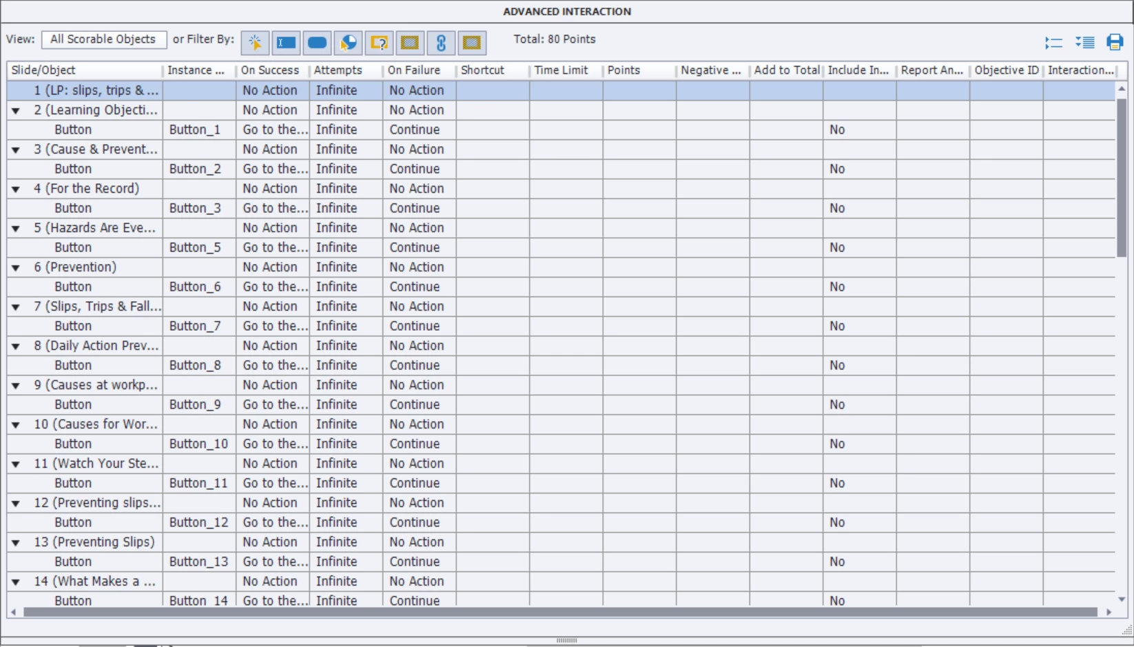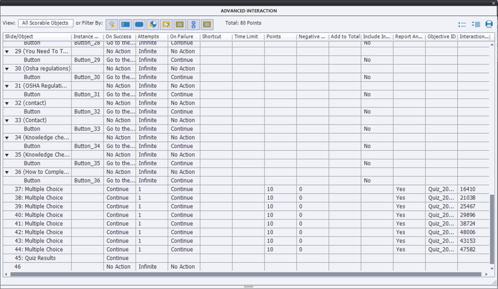 Is there anything I can edit here in the Advanced Interactions panel to check if the scoring has been set up correctly?