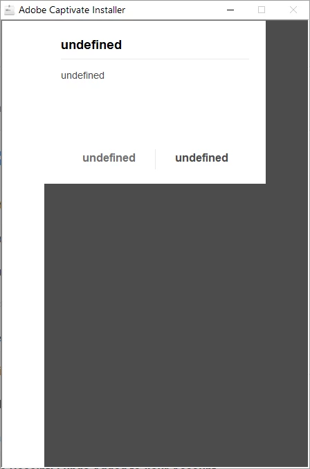 After download, extracting, and proceeding with the installation, I'm having similiar problems like noted in many other forum posts, but Ive been unable to find a solution. I've moved the extracted folder to the desktop, ran the Set-up.exe as administrator, but still just a blank window with "Adobe Captivate Installer" in the title bar. Trying to close this window only displays "undefined". The application needs tb be closed in the task manager.