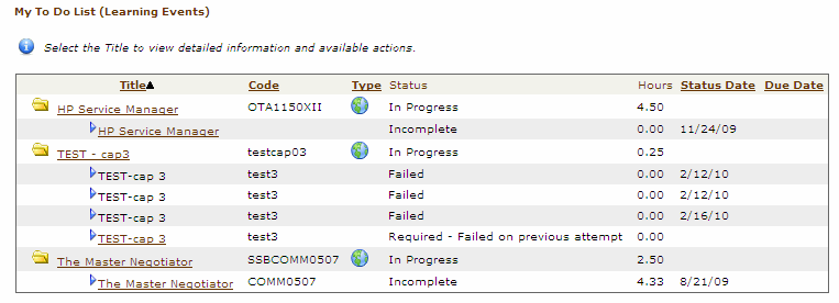 It's a little hard to see, basically it shows my three quiz results with "Failed" after each.