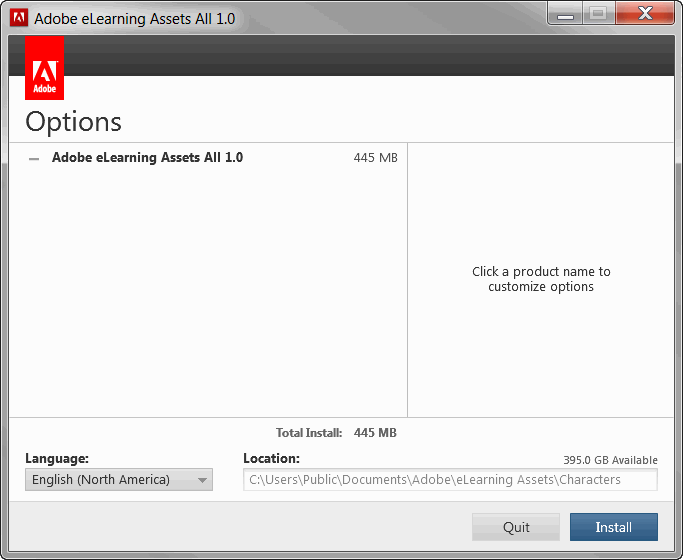 You may be wondering why they weren't simply included to begin with. And the answer to that is to ask you to recall the massive size of the eLearning Assets. It rivals the size of Captivate itself. So it isn't included until you really choose to install the characters.