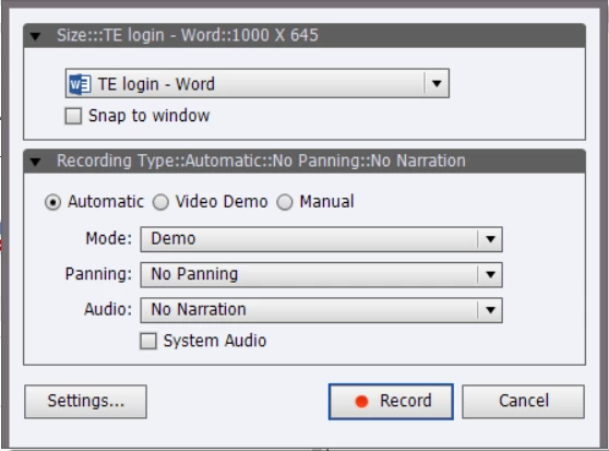 I also tried changing the resolution settings of the application I’m recording (not MS Word, just chose that to show settings window), and it does the same thing with the record window displaying on the capture with distortion. I saw one other post similar to this using Captivate 6.1, and the outcome was it's a bug. Has the bug been fixed for Captivate 7? Or could this be a compatibility issue with Windows 10? Unfortunately, the company I work for requires Captivate 7, so I can't upgrade if that's the only fix.