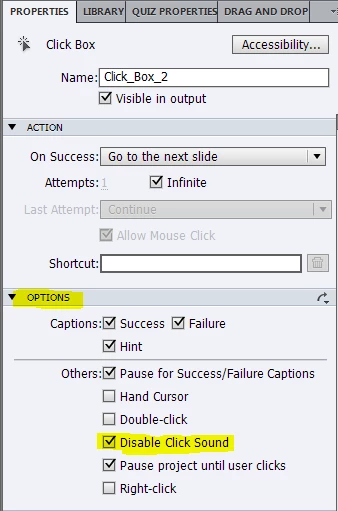 Captivate 7 - Turn off mouse click and typing sounds