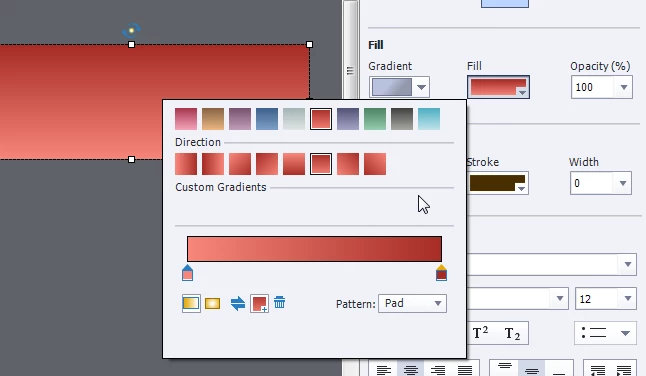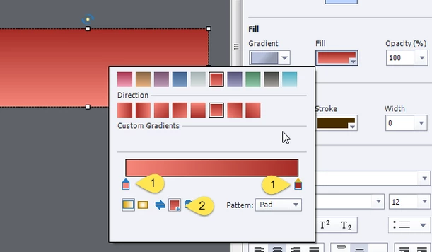 Hi. I am trying to customize the gradient colour for Fill. I do not want to use the preset colours. How can I change it?