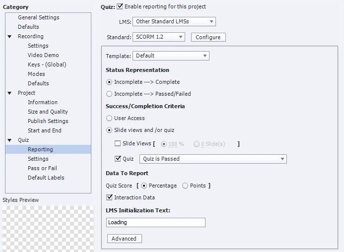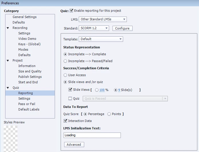 However, when I load it into my LMS, it is not. I've attached a Word document with my Quiz Preferences. I hope you can tell me how to fix the situation. The goal is for the Quiz to be accessible whenever needed as a review. However, I want the completion status to be determined by number of slides, not the 80% score. The quiz is a part of a program in an LMS,