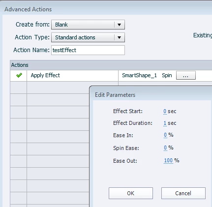 Without the drag/drop on the slide the AA works fine and my effect (spin, all default settings) works when triggered by the button