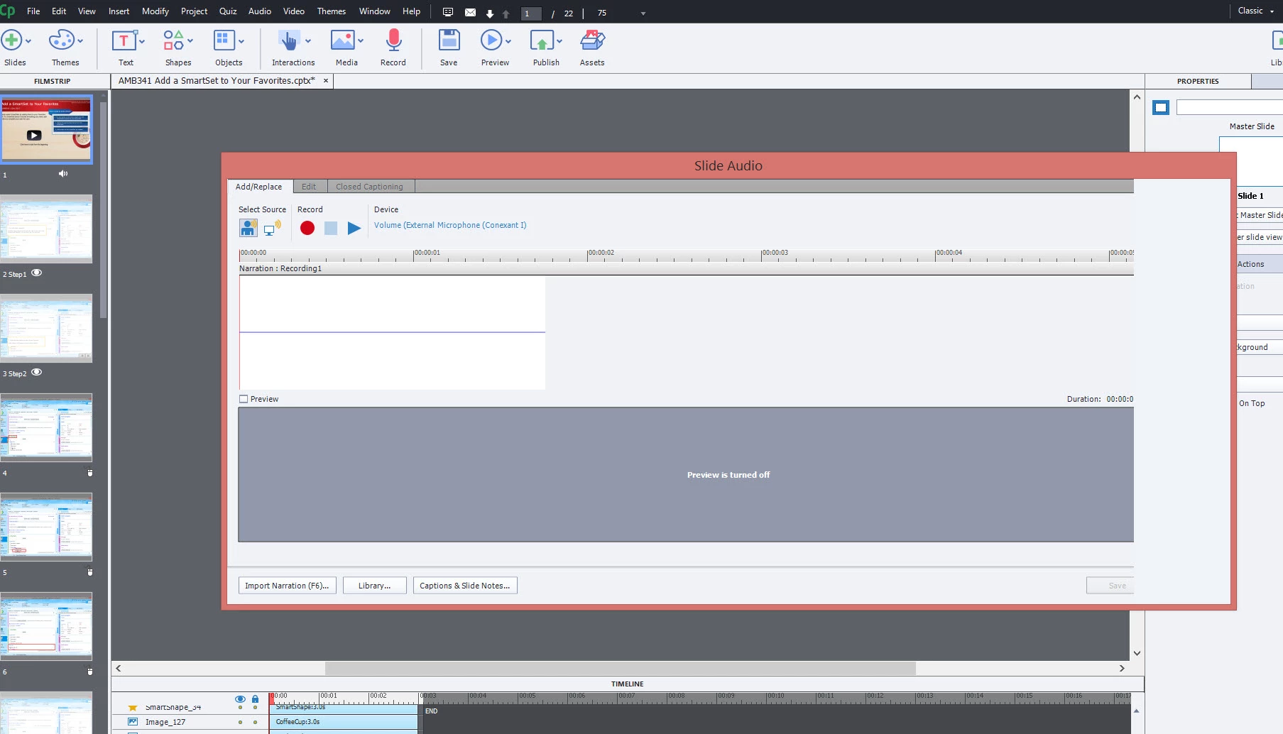 When I attempt to do anything with audio and the audio pop up screen opens, it cuts off the far right side of the box and I am unable to close the box. Once the pop window is open, I am also unable to click "close window" on my taskbar. So I have to log out of my computer and log back in. It does not matter if I am attempting to record, drag and drop, or import audio. I also have 2 screens at my desk and lately when Captivate opens, it goes across one screen and into the other. I have to resize it whether I am only on my laptop or docked at my desk. (Not sure it that has anything to do with it). I have recently had Window10 put onto my computer per my office so not sure if that is the issue since I have had other problems with Captivate since receiving Win10. Has anyone had this issue? Any help would be greatly appreciated since I am at a stand still at this moment. Thanks!
