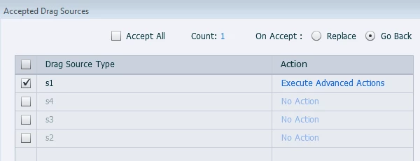 I'm trying to create a drag-drop with all targets in the same location. I want to hide all targets except one. Users should drag the correct source to the target, which then follows a motion path with it's source to fall on a stack at the bottom of the screen. The next valid target then becomes visible. Incorrect sources should be rejected.