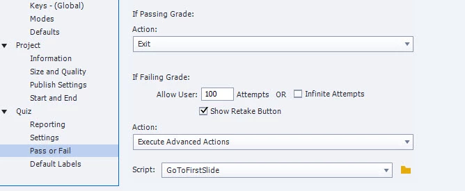 Anyone know how to control the Continue button on the Quiz Results screen...? I've tried everywhere I can think of and everywhere in Quiz Preferences, and the button does absolutely nothing. The Retake Quiz and Review Quiz buttons seem to do what they should. In the attached image, is it these dropdowns that should control the Continue button? The Quiz screen doesn't offer the Actions section... I don't know what else to try... inserting a SmartShape on the Results screen and using it as a button also does not work. There's nothing unusual about the Quiz I've set up... it's a Captivate Quiz template used as-is, no added Advanced Actions or anything. Thanks for your help!