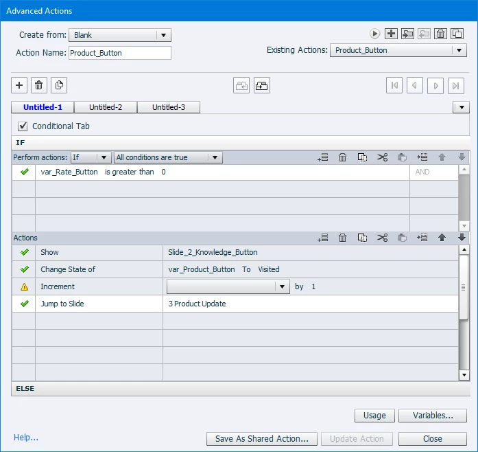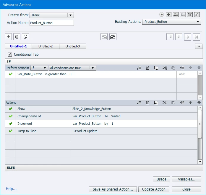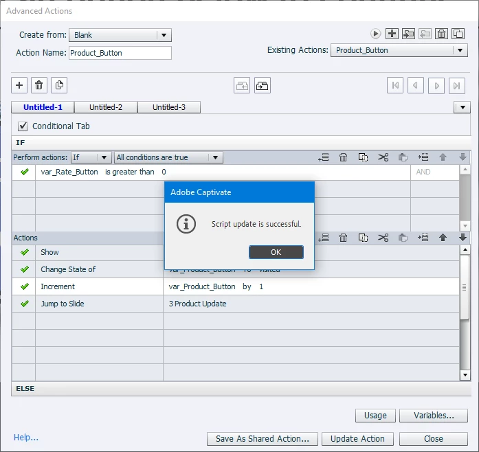 Captivate Advanced Actions Issue