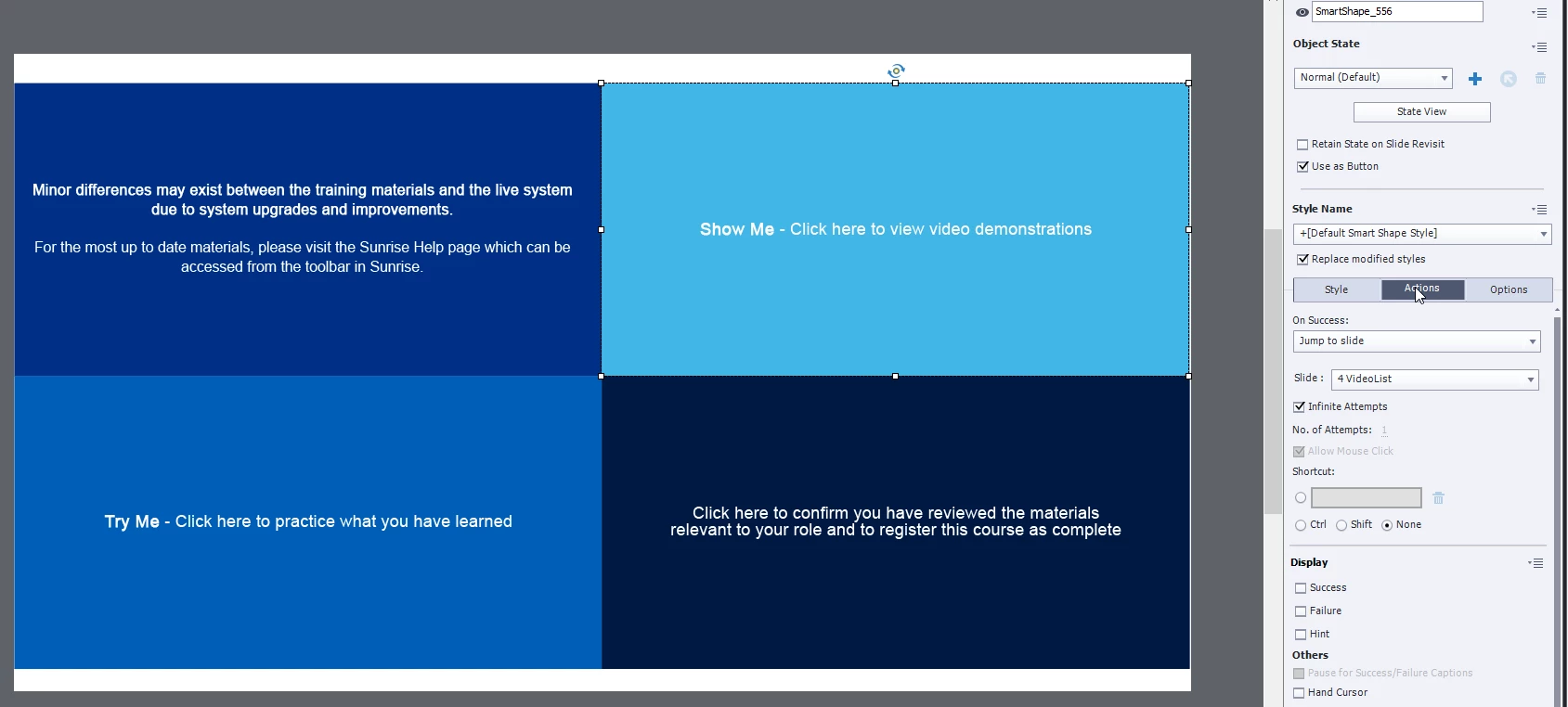 Each button is just a shape, made into a button (No states) and a Jump to action.