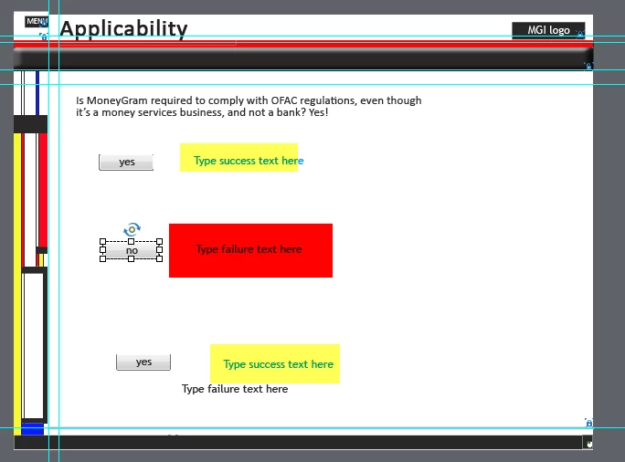 The 'failure' option is confusing me. Shouldn't it display the failure message? In my case it does not. Also, if I click on the 'no' button, the quiz counts it as a correct answer. What I want is for the three buttons to display the correct message, and for the quiz to correctly score and portray the number of questions.