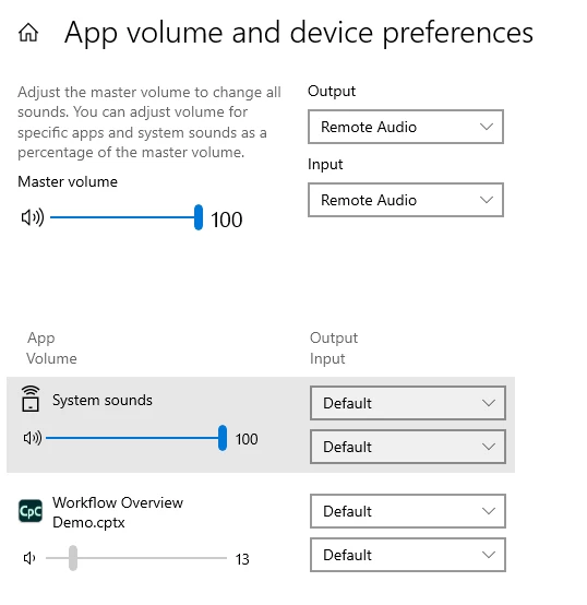 My IT guy and I have been trying to figure this out. I'm on Classic 11.8.3.8 on an AVD/remote desktop. I can record audio through my remote desktop in Teams and other apps, but not in Captivate. The System sound settings show that CpC is recognized, but when I try to AutoCalibrate, there's nothing. 😞