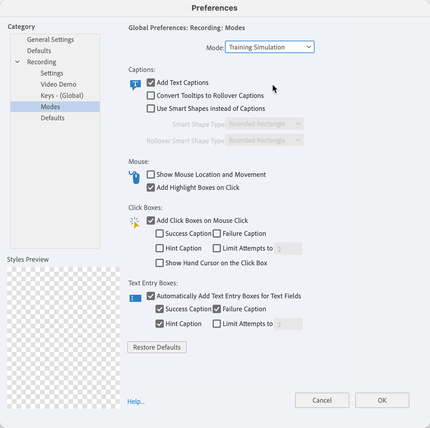 Captivate Classic: Software simulation - text entry boxes won't work