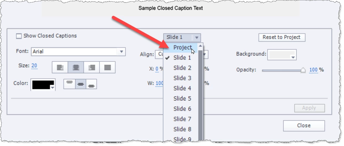 Captivate Closed Caption