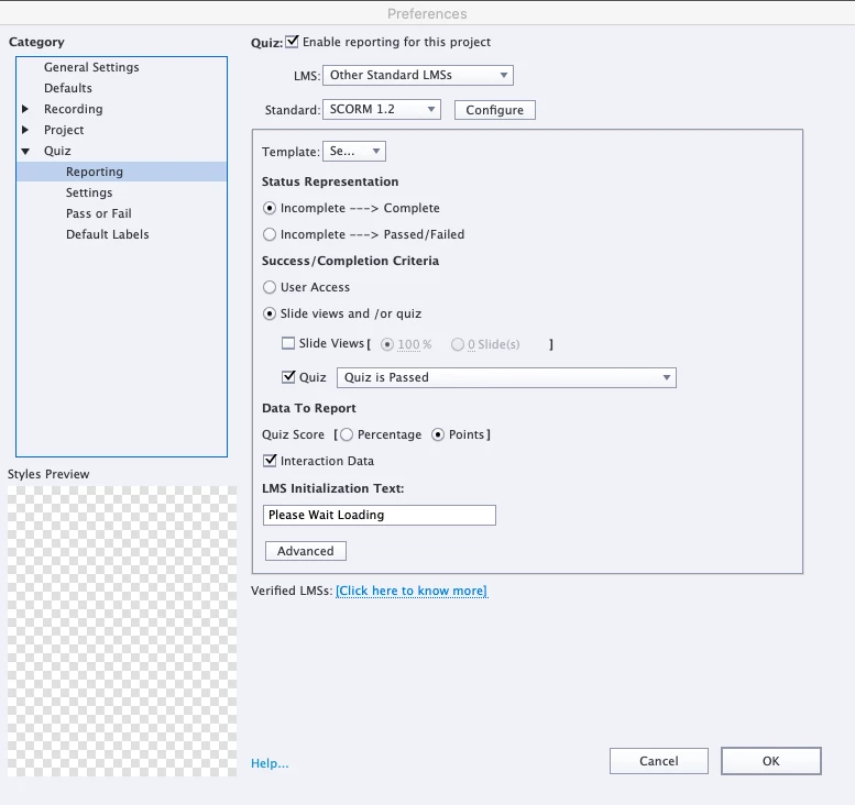 Captivate course not marking as complete