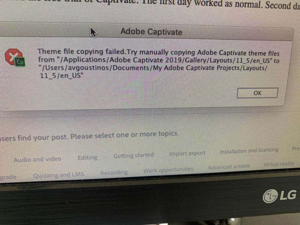I have downloaded the free trial of Captivate. The first day worked as normal. Second day is crushing giving me this warning...