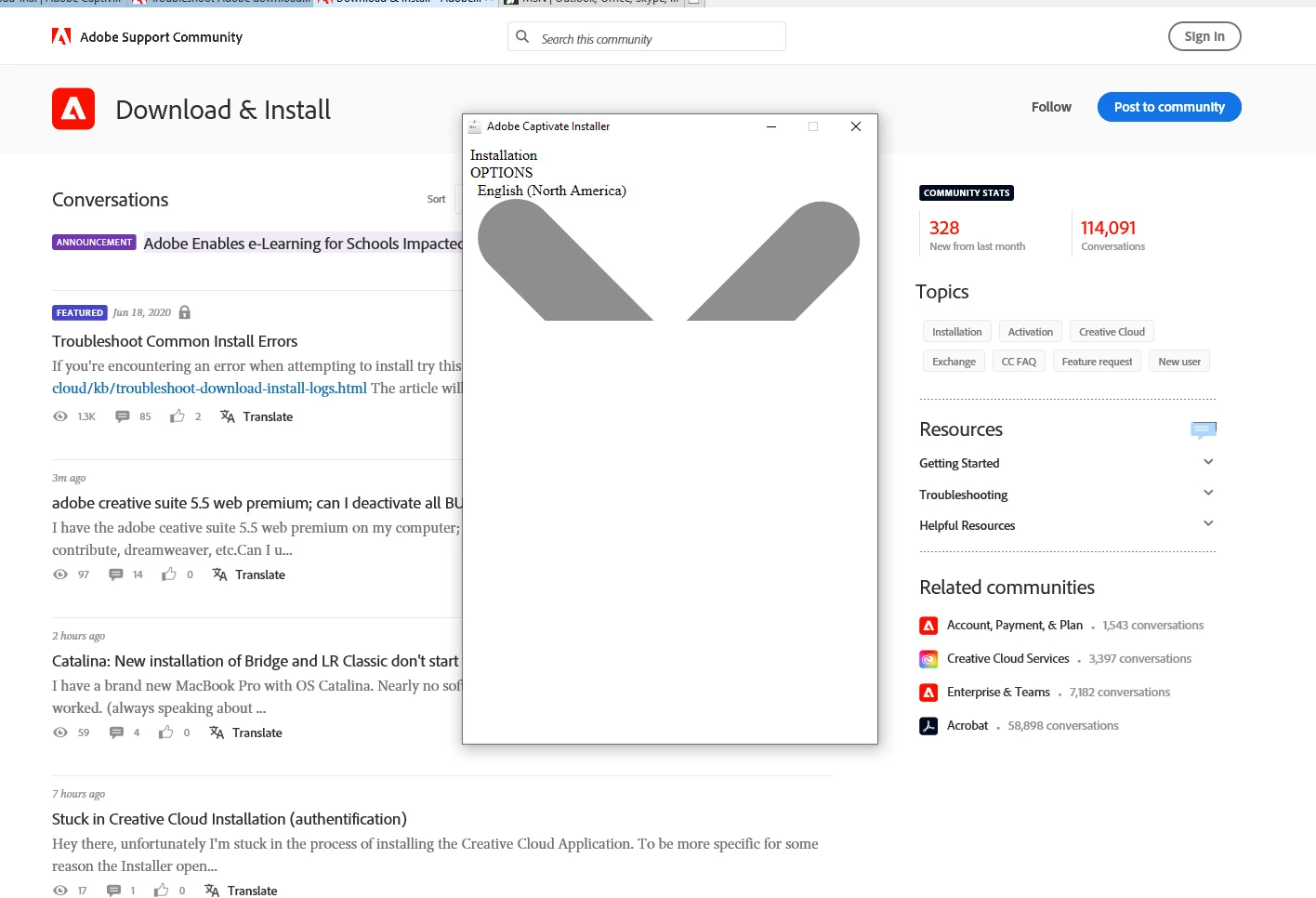 The installation options screen looks like only the top third is showing. I get to language and it shows English but there is nothing to click, select, or scroll and the screen is frozen. I have tried doing the download from the beginning but I can't get past this point.