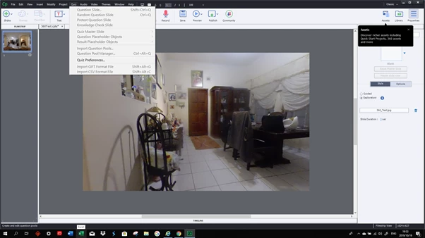 Hi all - I started a new 360-project with an image on the first slide with the idea to add a KC quiz. As soon as I did this, many of the menu items became greyed out. I cannot insert a new slide nor add a quiz. I restarted the machine with no difference at all.