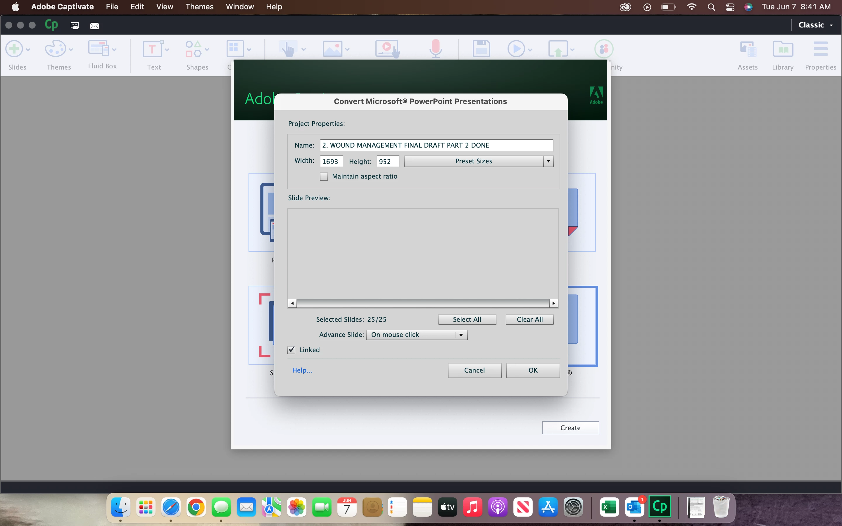 Is anyone experiencing this issue on a Macbook with Captivate? I upload my PowerPoint to captivate and cannot advance past this screen and it also never shows a preview of my slides. I have tried everything including renaming the PowerPoint to not include any special characters, tried copying my slides and making a brand new PowerPoint, etc. Adobe support even had me download a "different version" of captivate that is more compatible with my MacBook. Adobe support has said they would evaluate my PowerPoint and see if they can figure out the issue but they have not gotten back to me or provided any sort of feedback. Each time I email an agent, they don't respond and when I chat with them they just say an agent will be in touch shortly. This has been extremley frusterating. I am on a strict deadline and need this situation addressed ASAP. Has anyone else experienced this issue? Please help!!