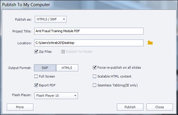 I typically publish projects in Captivate using HTML5 for our LMS. But occasionally I do need to render an interactive PDF.