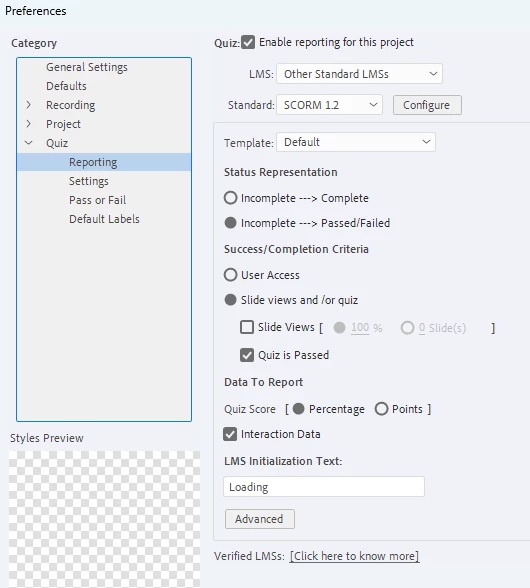Captivate Quiz Reporting to LMS for "Complete and Failed" Status