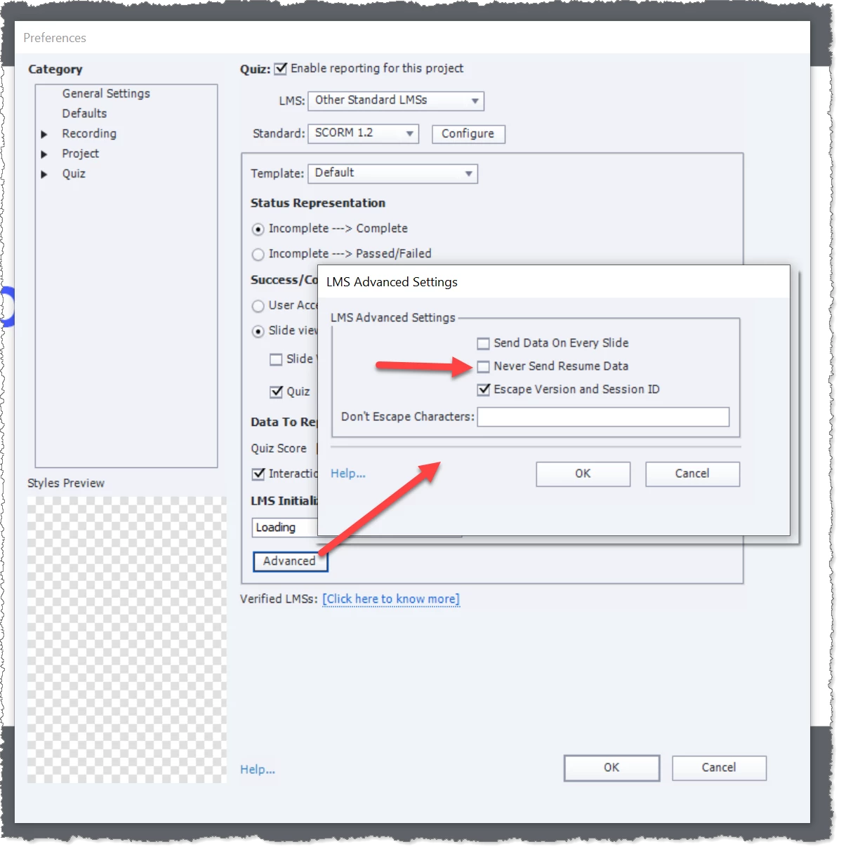 I'm using Captivate 2019 and publishing my project as SCORM 1.2.