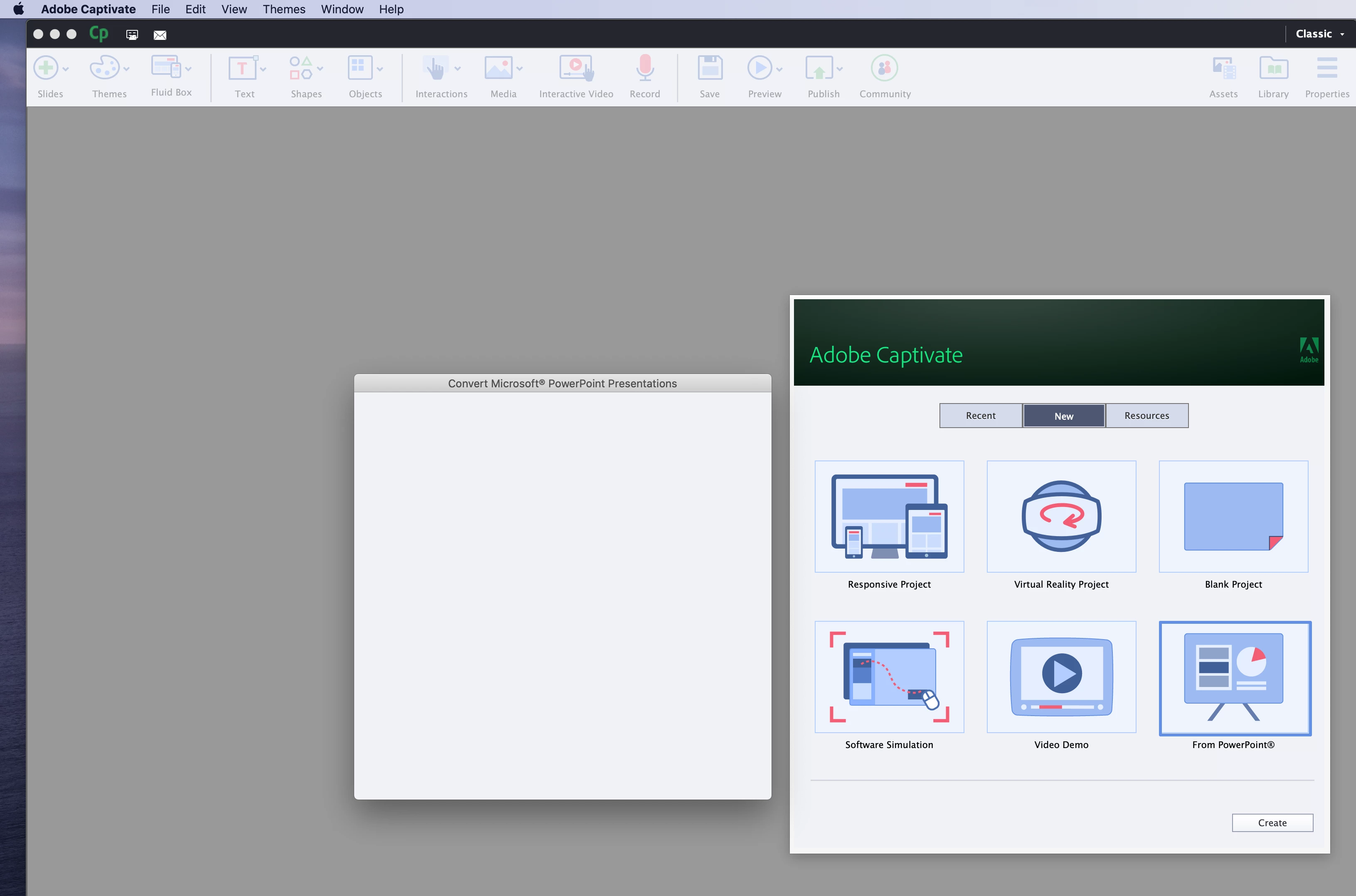 Captivate: Unable to use Advanced Actions, Preview Files or Convert from PowerPoint