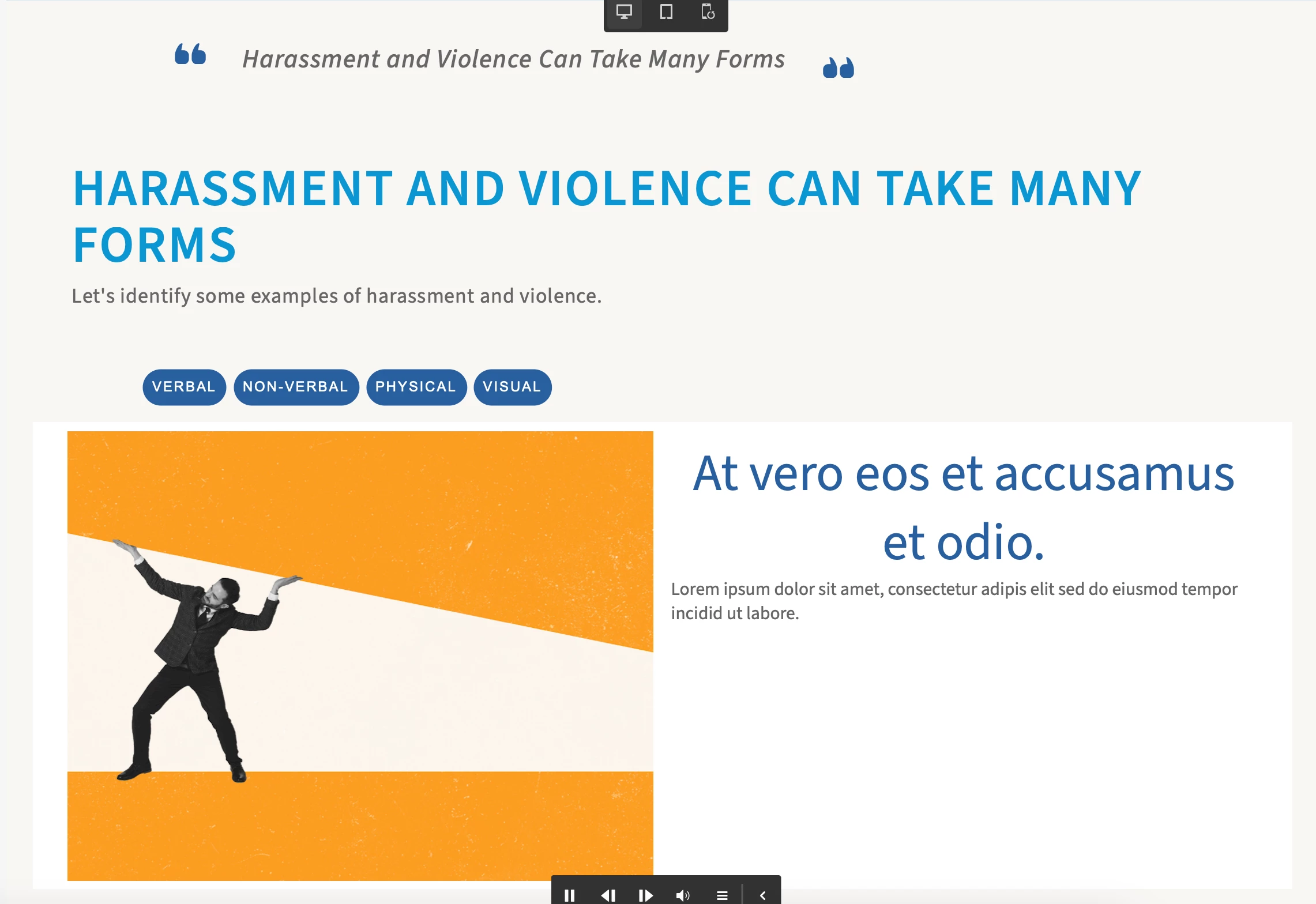 - I have set up custom interactions on the media image block below the button bar so that each button opens a different image, title, and text. I have the interactions set with no problem, but I can't figure out how to hide or remove the default image title and text so that when users go to the slide, there is a blank area below the buttons.