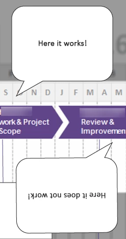 I was working on a timeline in Captivate and wanted to call out sections of the timeline phases by using the shapes and text. Due to space and the background graphic, I was experimenting with having the comment shapes on the top and also on the bottom of the timeline The shapes were fine yet when I placed the comment shape upside down by using the turning point, the text goes upside down. The text direction is wrong.