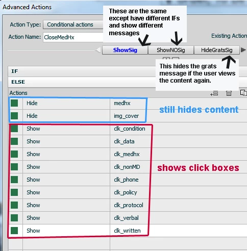 I solved this for the content by hiding the boxes when the user clicks one, and showing them again when the user clicks back. However, I also have two conditional congratulatory messages that appear when the user clicks the back button if they have viewed certain content. The trouble is the back button is saying to show the click boxes when the congratulations appears. I haven't figured out how to keep the click boxes hidden while these congratulations messages are showing. Any ideas?