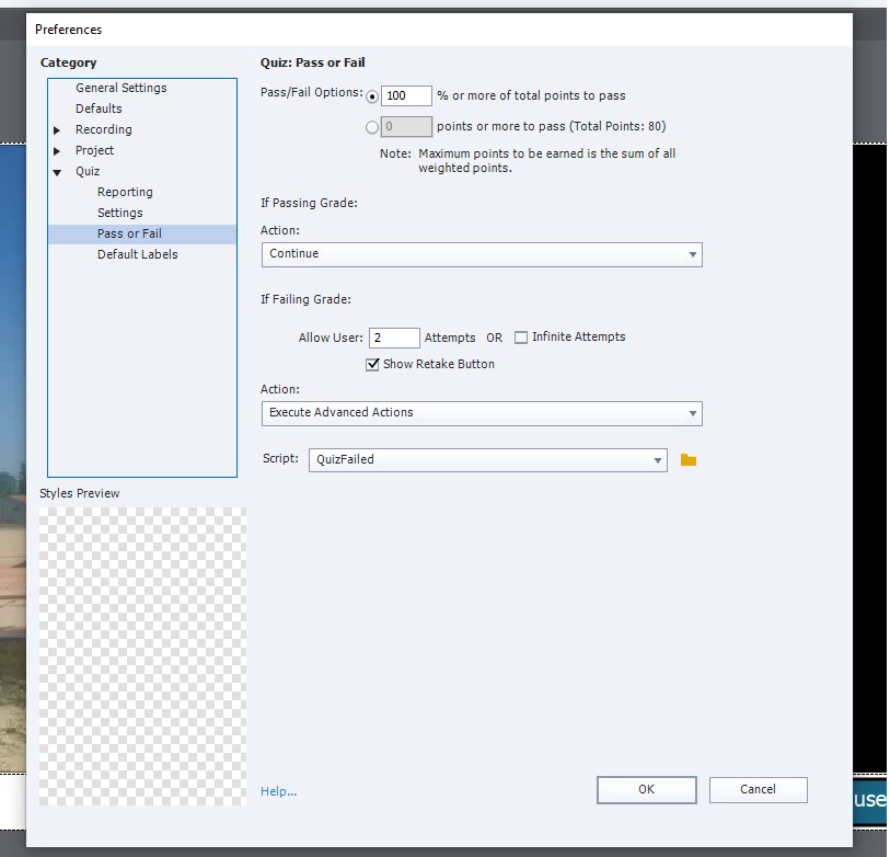 I'm back with another question for the multiple training courses I have been tasked with designing. Currently when a user fails and clicks next on the results page this is what happens: