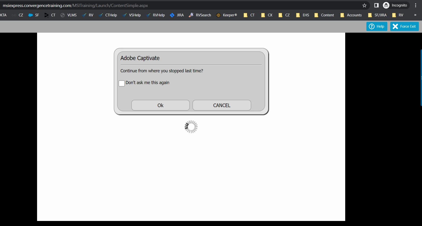 - When they say "yes" and they complete the training, the training does not "complete" (because they haven't satisfied the completion criteria since their initial session progress was not saved)