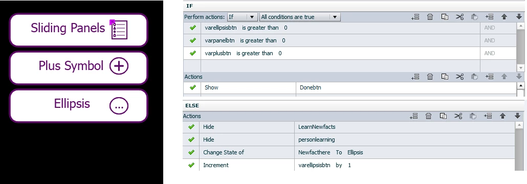 Hi everyone! I created an interaction with 3 buttons and 3 variables. After all the buttons have been clicked at least once, then the Done button should show. But, the done button doesn't show until after 1 additional button is clicked. So, one of the buttons needs to be clicked a 2nd time in order to display the Done button.