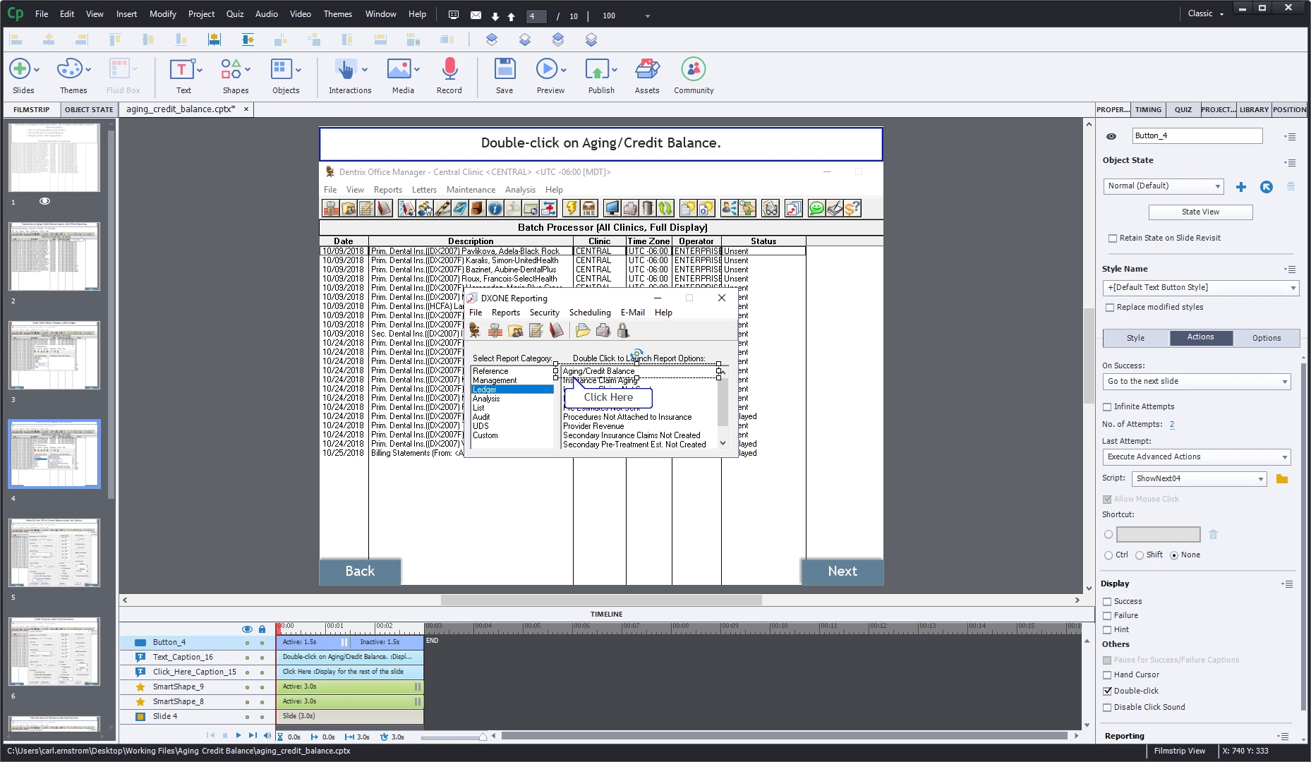 All of the slides with a single click work with no problem. On the slide where I need the user to double click, it will work if they initially double click in the correct spot, but if they do not and the state changes, the double click does not work.
