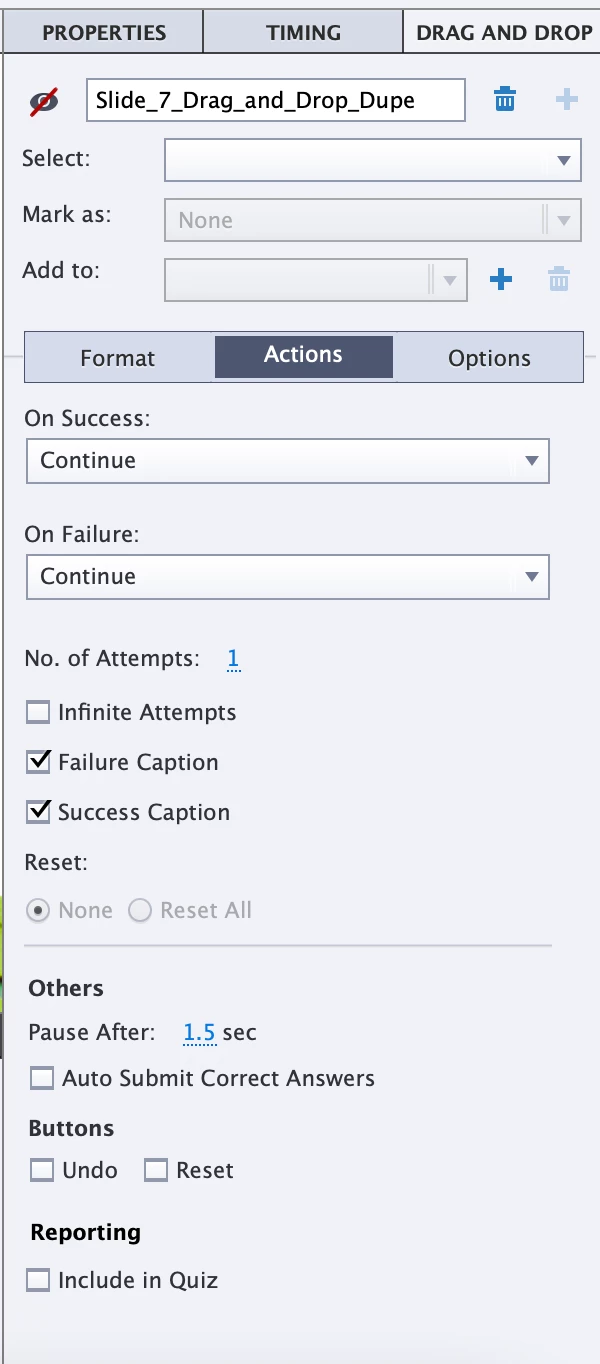 I'm creating a drag and drop for my course and everything is going well. However, for some reason (I'm obviously doing something wrong) once I preview in my HTML 5 my finished drag and drop slide, dragging the right answer to the correct box says, "incorrect" when it is "correct". I've been working on this issue for a day. This should a simple task, but I'm struggling! I'll show a few screen shots.