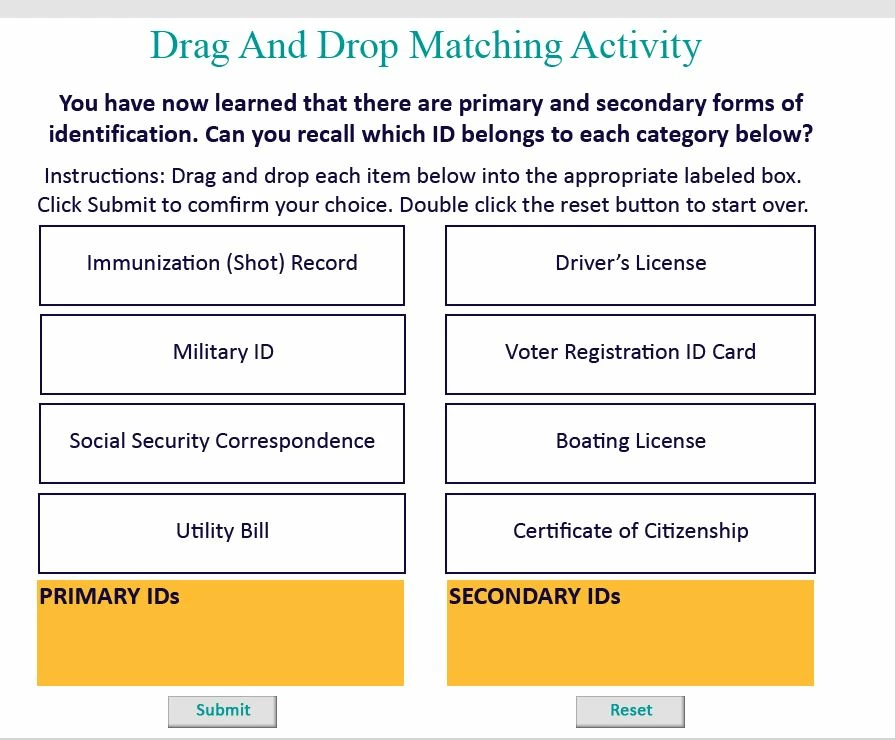 Hi, everyone, and Happy Fourth of July! I am creating a Drag and Drop activity using Paul Wilson's tutorial titled Drag & Drop with multiple correct answers. It is working fine, except I wanted 4 answers to go into one box and 4 answers to go into another box. If all four are in the proper two boxes then the answer is correct. Is this possible?