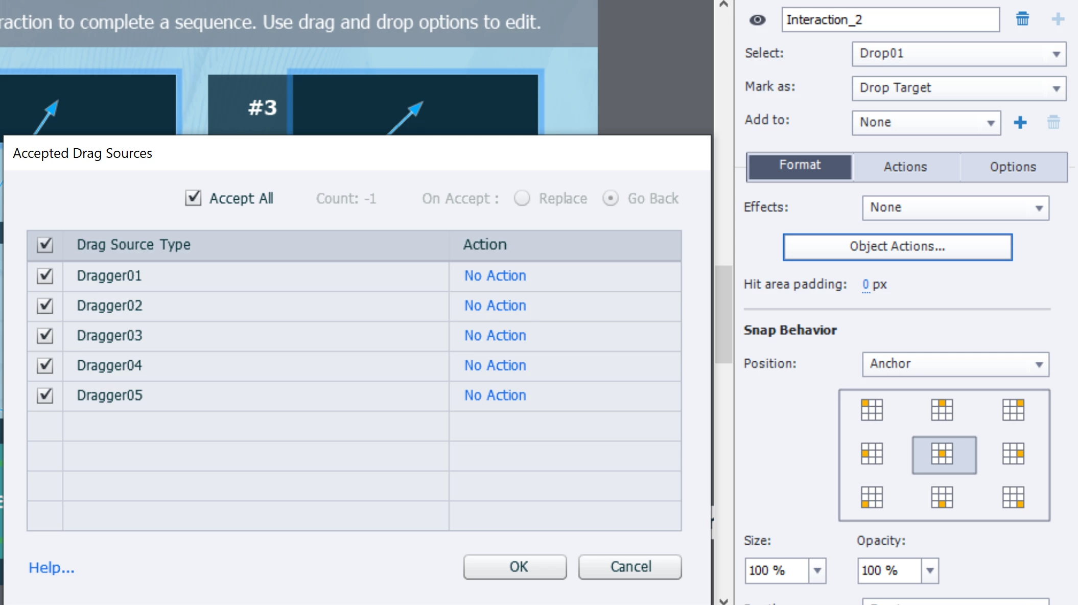 - You will see that the option 'Accept All' has been unchecked, and only one Drag source is allowed on this target. You will also see the 'Go Back' option here.