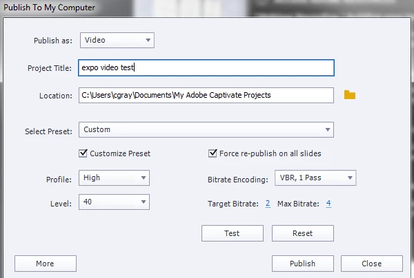 - If i publish as HTML5 / SWF or to executable the project is perfect.