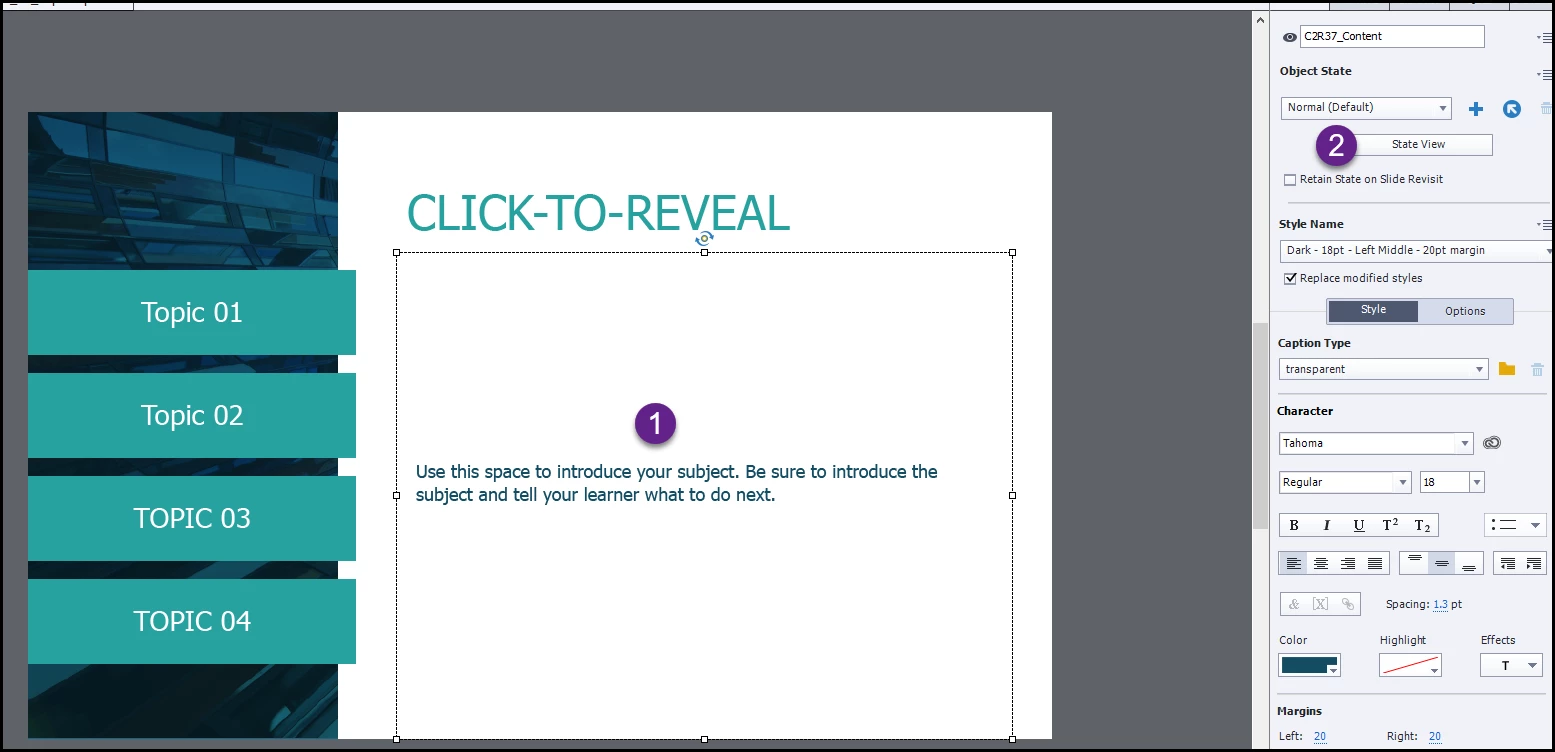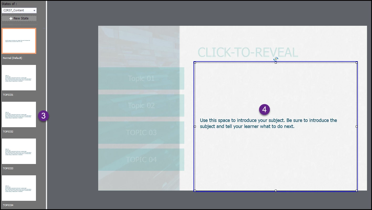 Editing a click to reveal project