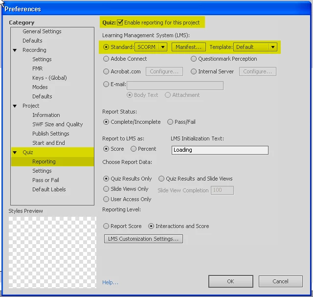 With Captivate we can create elearning content and publish that as a ZIP file. We can then upload that ZIP file to any scorm based LMS.