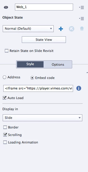 Here's a screenshot of the properties panel when one of the embedded videos is selected: