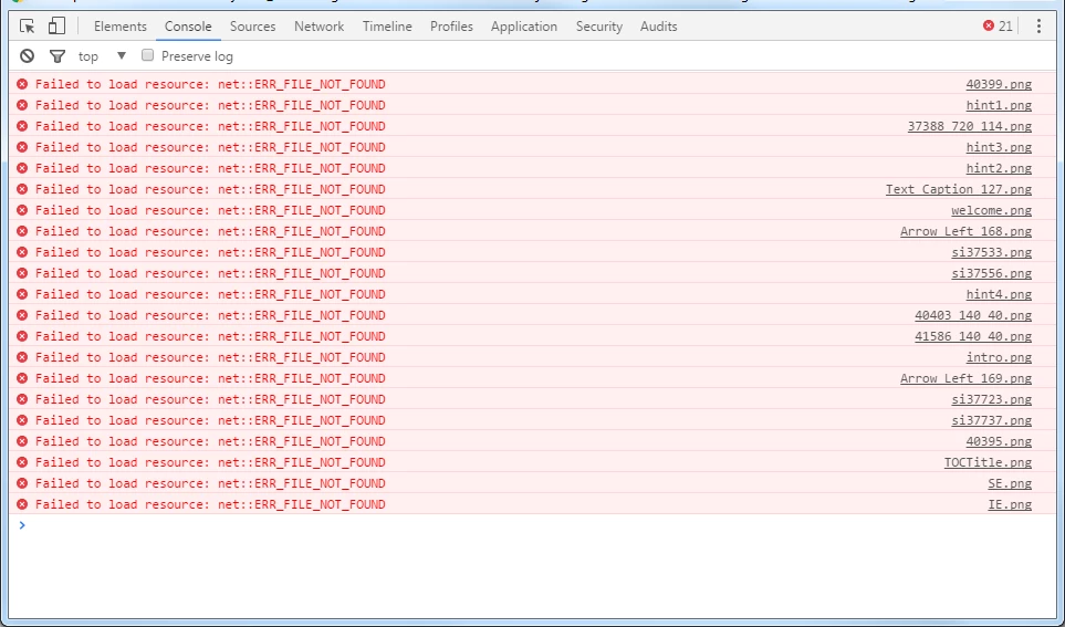 In chrome I can see ERR_FILE_NOT_FOUND error messages.