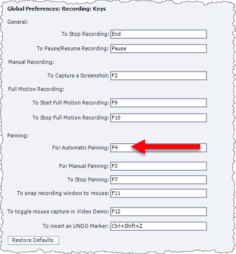 The default usage of F4 keystroke during a Captivate simulation capture is to turn on automatic panning.